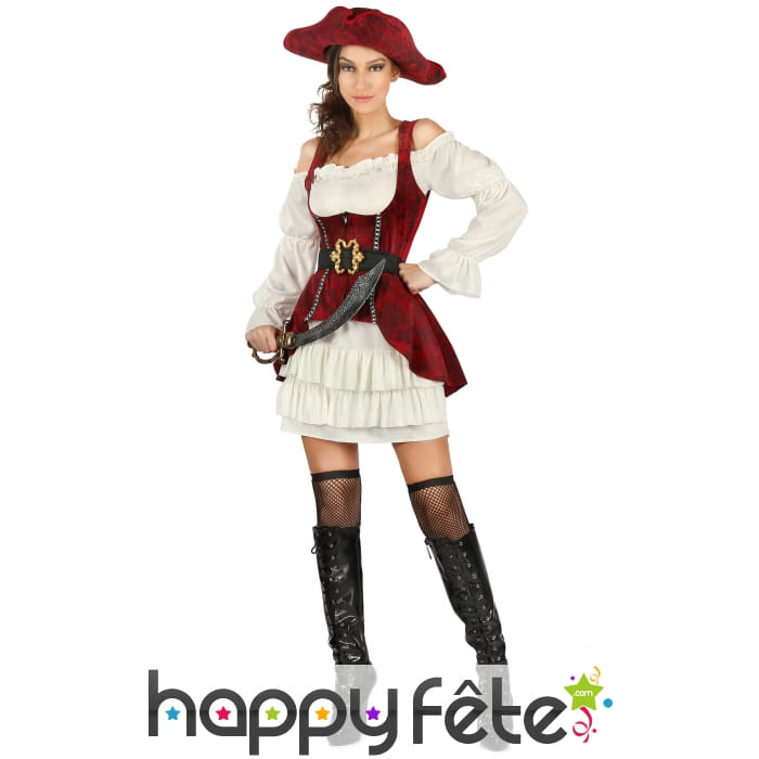 Avec cette élégante tenue rouge et blanche de femme pirate, aucun bateau ne résistera à vos assauts.