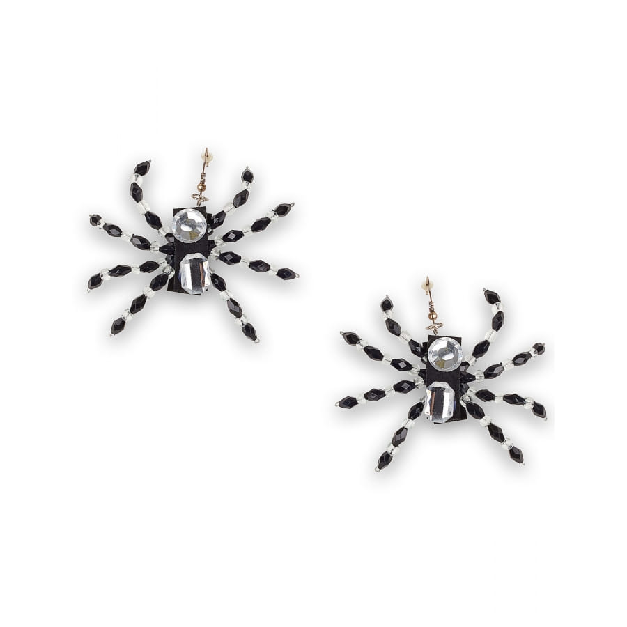 Quant aux deux boucles d'oreilles à clip, chacune d'elles est constituée par un corps d'araignée avec 2 cabochons argentés, des pattes en fil de fer décorées de perles noires et argentées.