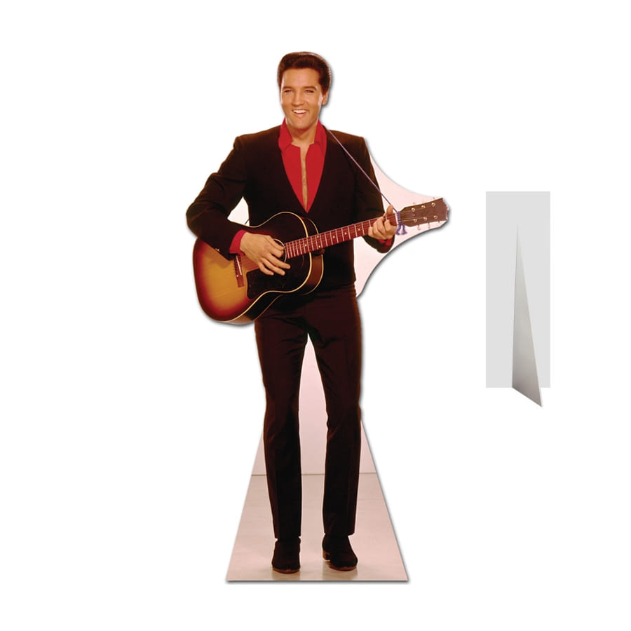 The king of Rock'n rolls grandeur nature ! Cette figurine géante est en carton, représentant le célèbre et talentueux chanteur américain Elvis Presley en chemise rouge et veste noire, accompagné de sa belle guitare. Cet article de décoration mesure 180 cm de hauteur. Pour toutes les soirées sur le thème Rock'n roll ou musique, cette silhouette taille réelle est indispensable.