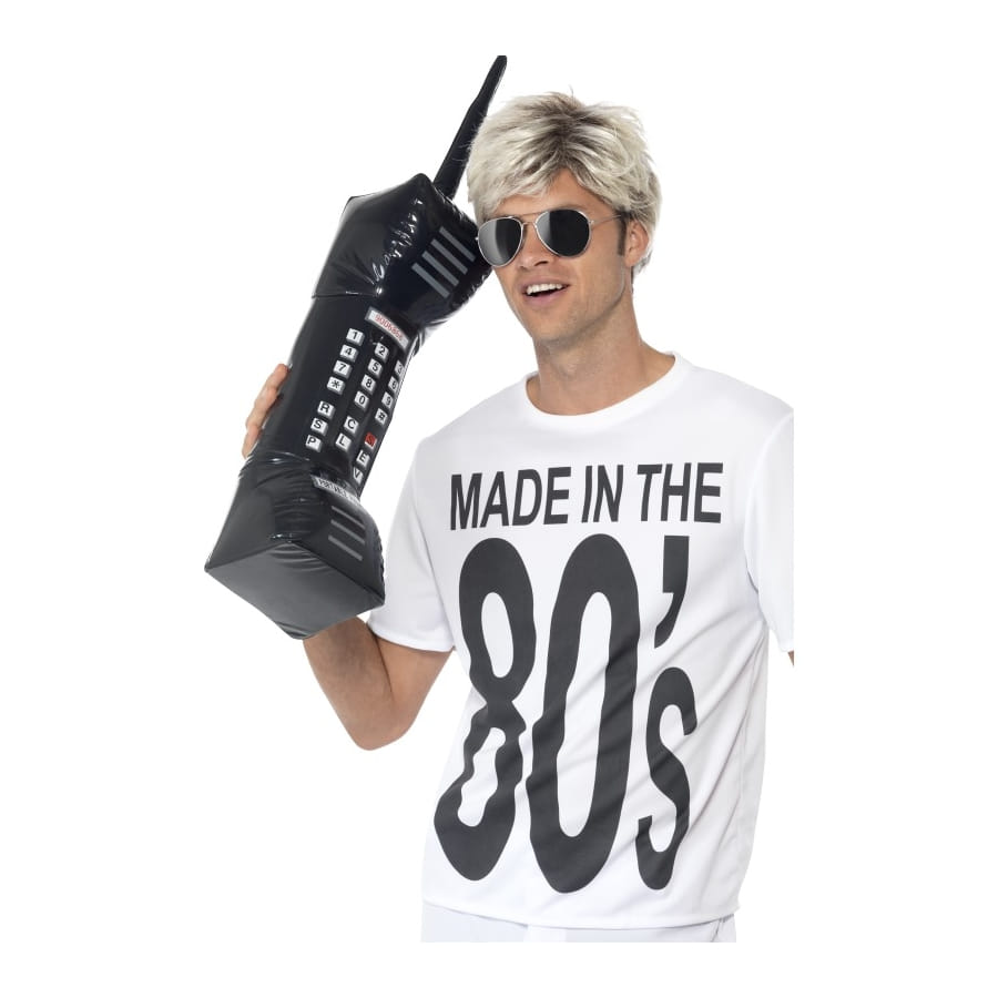 Exagérez votre déguisement avec ce téléphone portable rétro gonflable de couleur noire. Le téléphone mesure 76 centimètres de long et est idéal pour un déguisement basé sur les années 70. En effet, on se souvient tous des énormes téléphones, très clichés aujourd'hui, qui étaient utilisés dans les années 80.