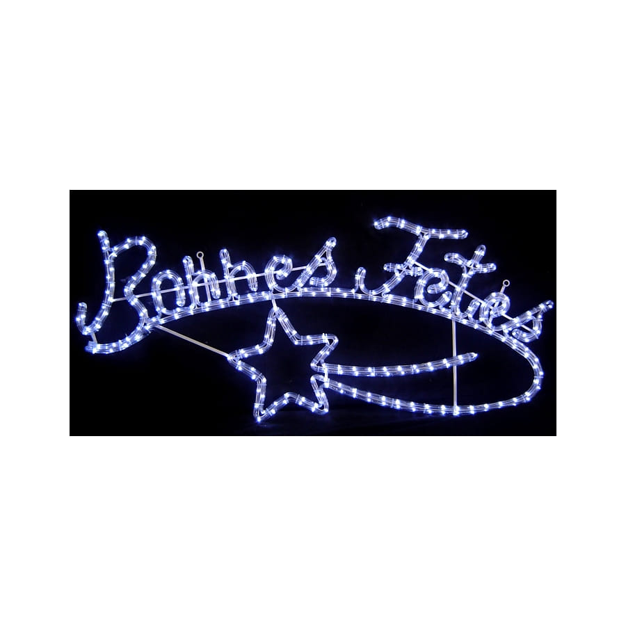 Pour que votre décoration soit unique, ce décor de 'bonne fête', est ce dont vous aurez besoin pour les fêtes de fin d'année. Tout le monde lira votre message. De couleur bleu, c'est une étoile filante au dessus écrit 'Bonne fête'. Le tube fait 130 cm * 55 cm et il y a 336 leds clignotants.
