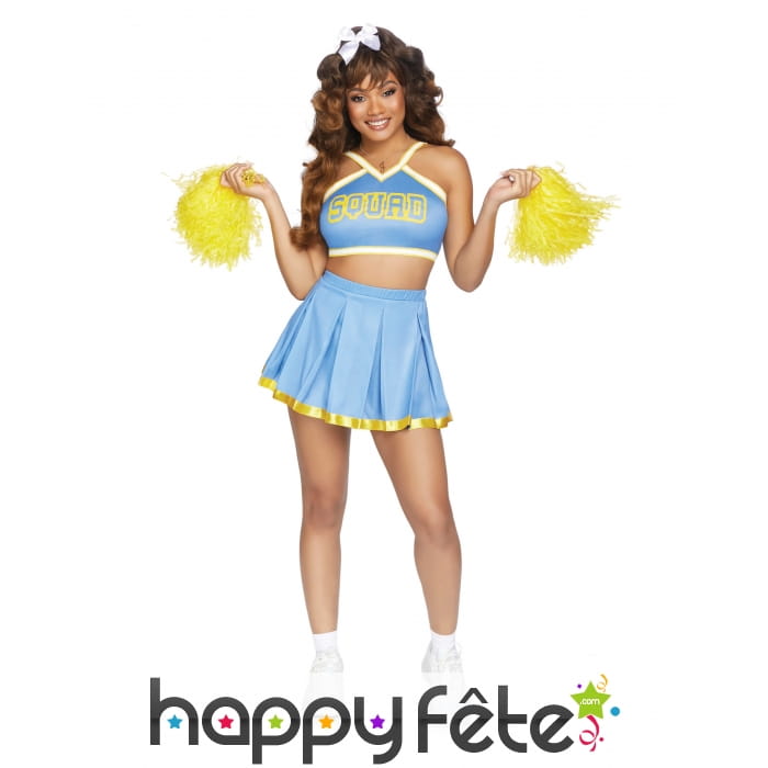 L'ensemble bleu de pompom girl pour femme luxe est composé de 3 pièces.