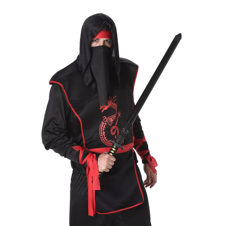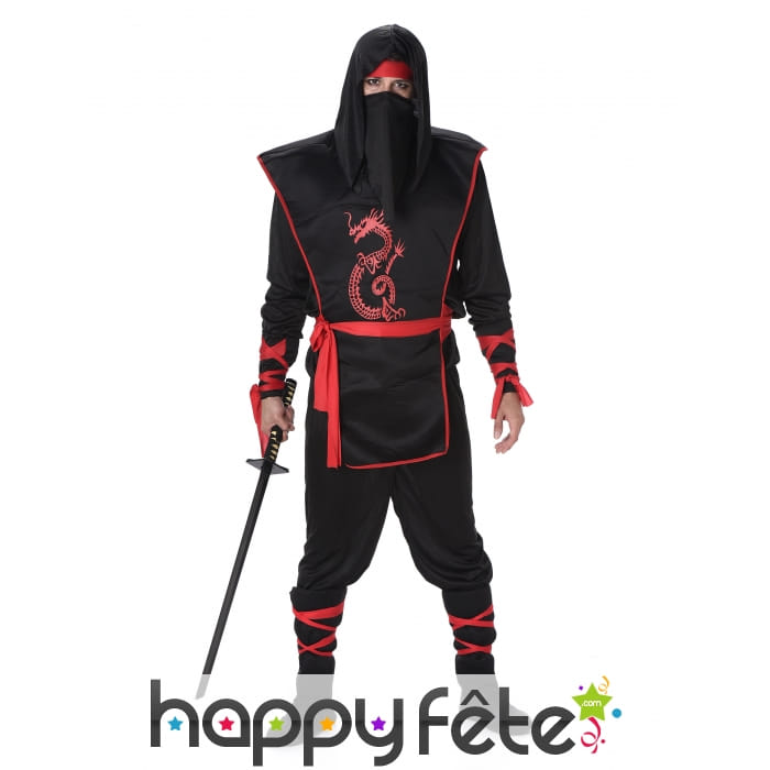 Pour un carnaval ou une soirée déguisée, mettez-vous dans la peau d'un samouraï japonais avec cet ensemble de ninja noir rouge pour homme.