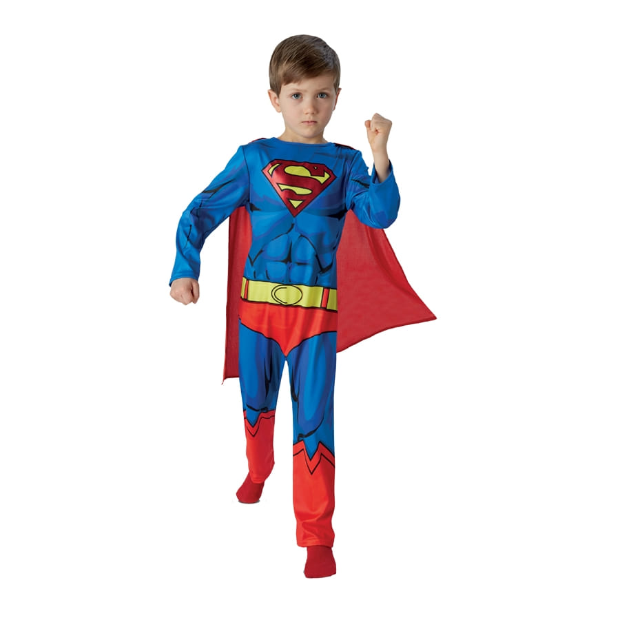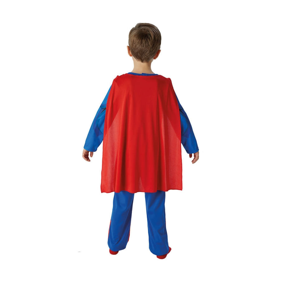 Cet ensemble de Superman pour enfant comprend : une combinaison imprimée et une cape rouge. La combinaison est de couleur bleue, reproduisant à la perfection le costume du fameux Super-héros de Cosmopolis. Le légendaire logo du Superman est mis en avant sur le torse avec des motifs qui donnent un effet musclé parfait. L'indispensable cape rouge termine à merveille le costume. Ce dernier est sous licence officielle Superman, dédié aux petits garçons. Vous pouvez choisir entre les tailles suivantes : 7/8 ans, 5/6 ans et 3/4 ans. Ce sera une excellente idée de cadeau pour les fans de Superman.