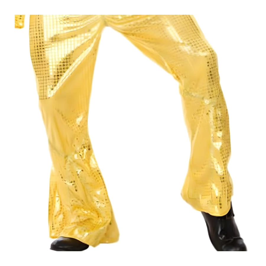 Vous avez le disco dans le sang ? Avant de vous lancer sur la piste de danse, vous allez devoir passer par un relooking spécial années 70-80. Découvrez sans plus attendre l'ensemble disco doré uni pour homme. Il s'agit d'une combinaison de couleur or et bronze avec effet brillant. Le tissu utilisé est de nature élastique. Les manches sont longues et évasées tout comme le bas du pantalon. La combinaison est dotée d'une encolure en V. Vous êtes sûr de faire une entrée remarquée grâce à la couleur dorée de votre tenue. Pour souligner le style disco, il est conseillé de porter une perruque afro ou de rajouter des accessoires sur le même thème, tous disponibles sur happyfete.