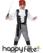 L'ensemble noir et rouge de pirate pour enfant est un costume très élaboré destiné aux garçons.