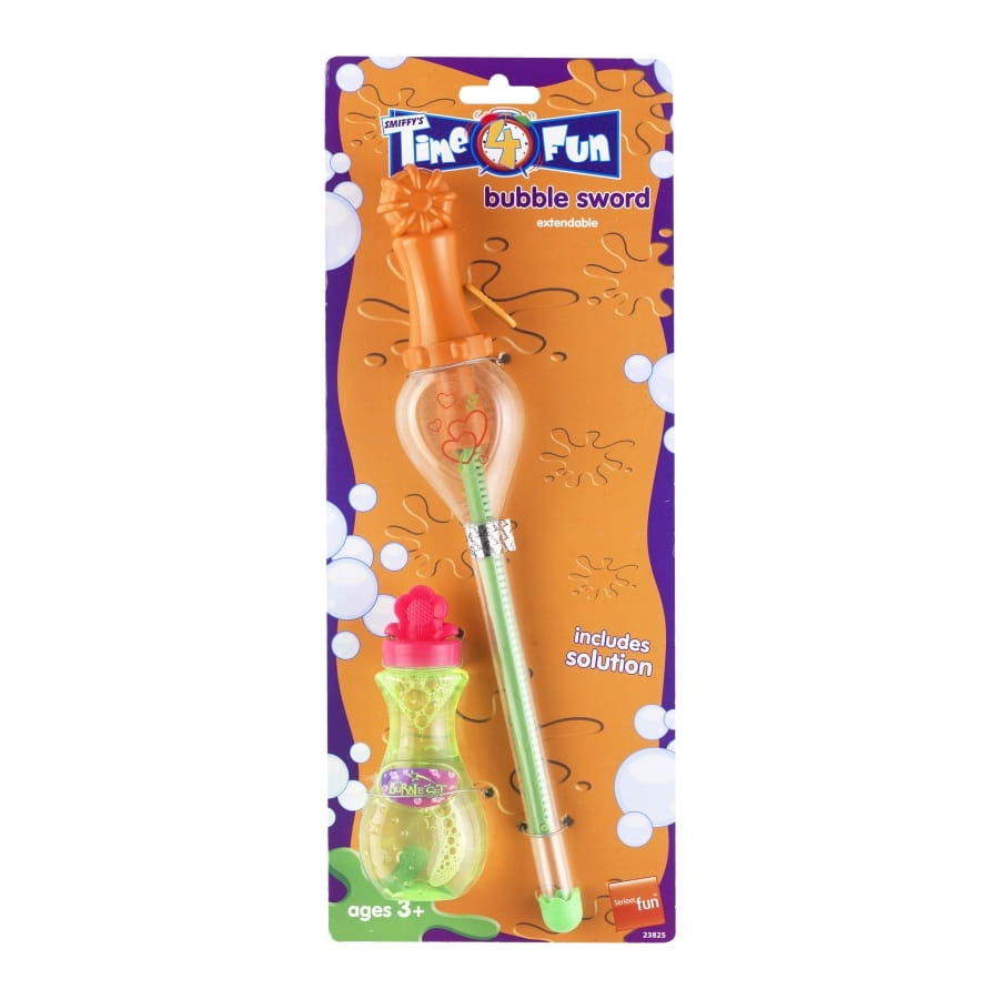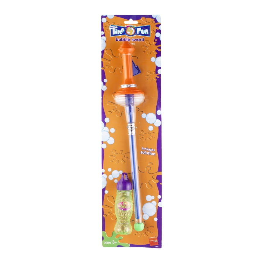 Une épée a bulles sera parfait pour qu'il fasse des bulles avec ses amis. Cette épée est transparent , vert et orange. La solution pour les bulles est dans un flacon vert.