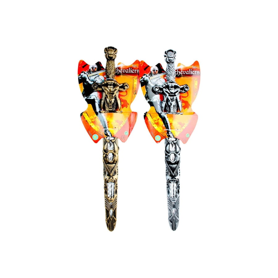 Epée de Moyen Age avec fourreau. Cet accessoire mesure 54 centimètres de long. Au moment de passer la commande, vous ne pourrez choisir ni le modèle ni la couleur. Vous recevrez un des 2 modèles possibles. Vous pouvez l'offrir à votre enfant comme cadeau simple ou pour compléter un déguisement.