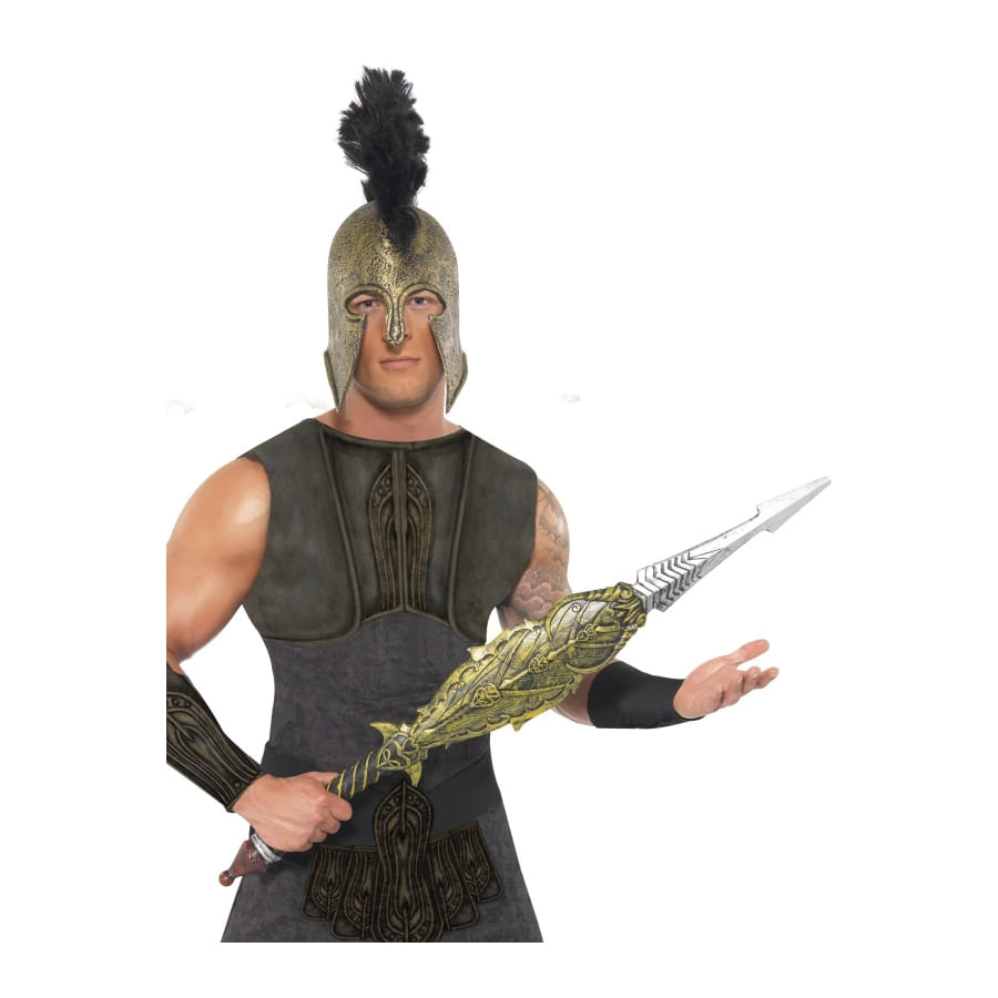 Pour le carnaval vous vous déguisez en romain ou grec, cette épée vous serez utile. Vous pourrez aussi vous en servir pour une fête sur l'antiquité. La manche de cette épée est doré et bronze, l’extrémité est marron, la lame est argenté.