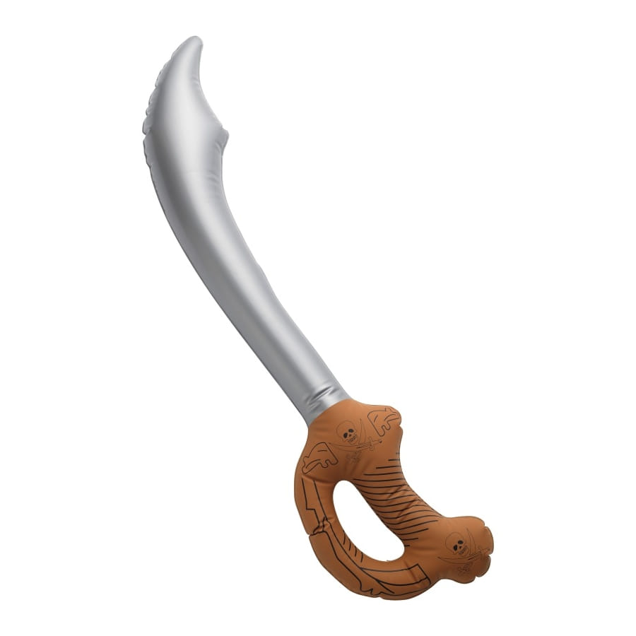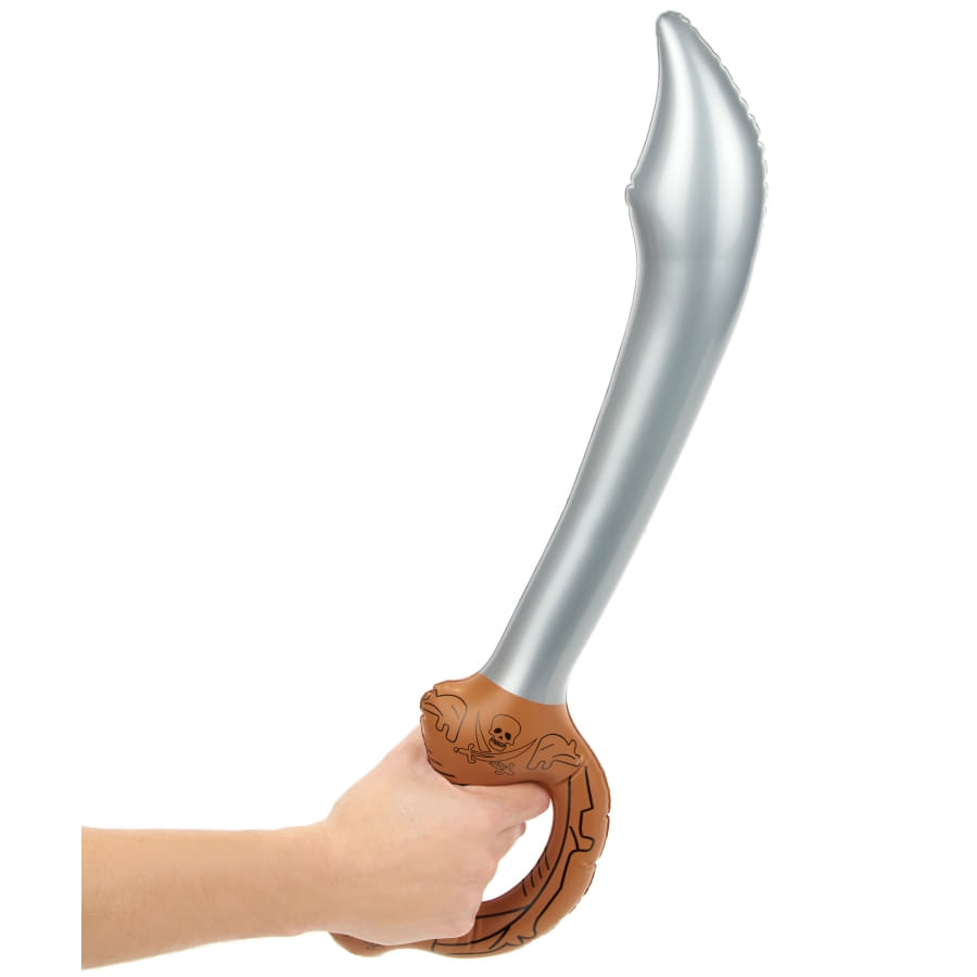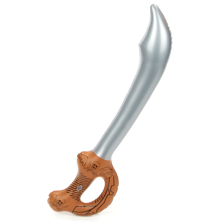 Epée gonflable avec lame argentée et manche marron pour enfant. Cet accessoire mesure 40 centimètres de long. Vous pourrez l'offrir à votre gamin pour qu'il s'amuse avec sans se blesser.