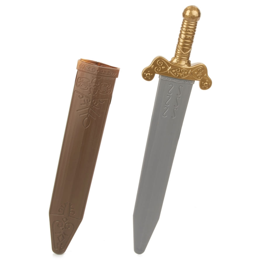 Pour compléter votre déguisement de romain, vous aurez besoin de cette épée. Vous n'aurez qu'a le retirer de son fourreau tout le monde vous respectera. Le fourreau est de couleur marron, l'épée est argenté, la manche est doré.