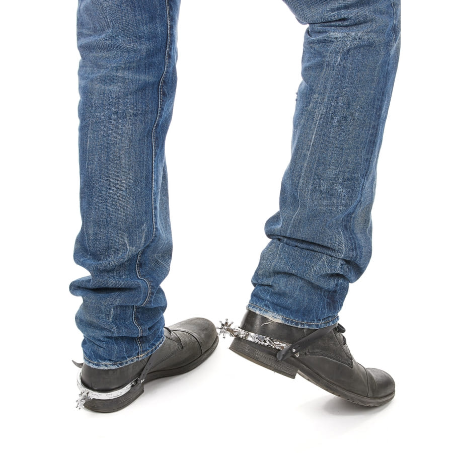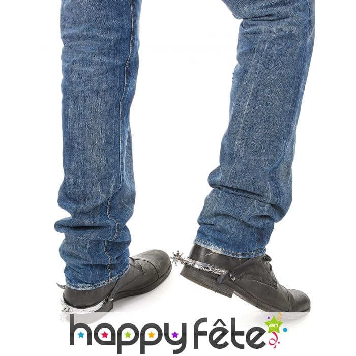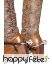 Cette paire d'éperons argentés de cowboy, en plastique, est appropriée à la gent masculine et féminine.