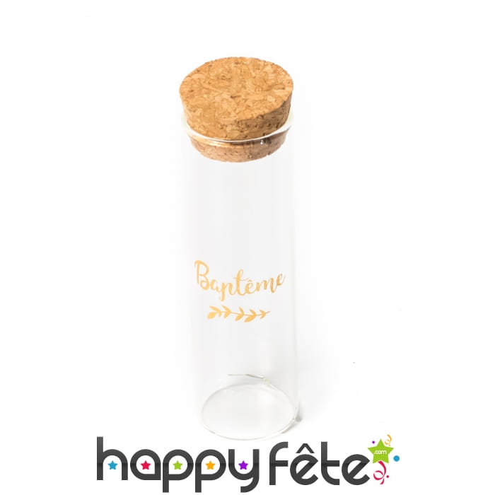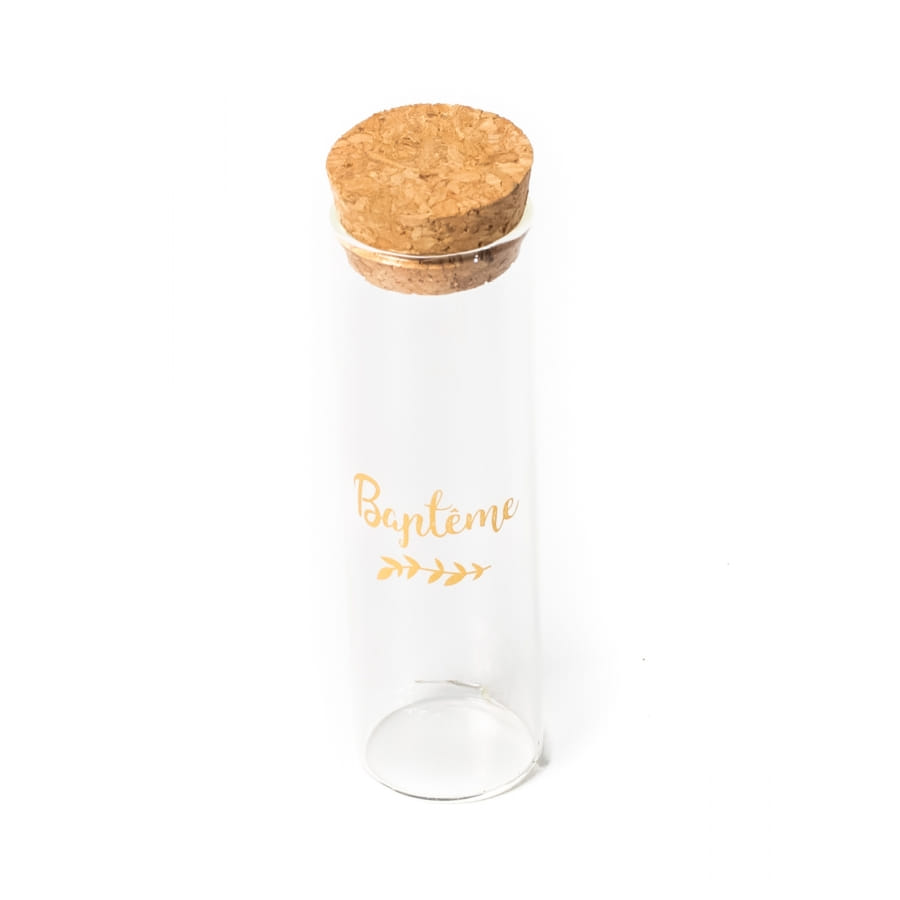 Cet éprouvette aux allure de tube à essai mesure 10 x 3 cm se constitue d'un tube de verre transparent avec un bouchon de liège.