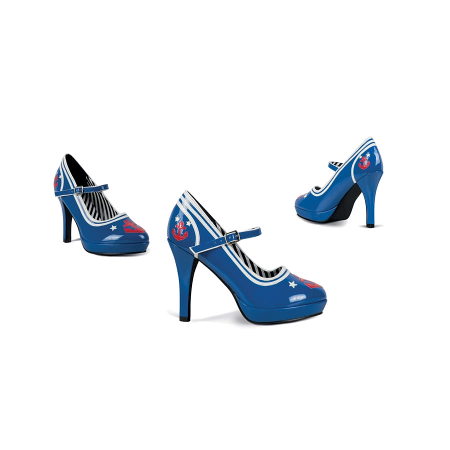 Si vous décidez d'arborer un uniforme en guise de déguisement pour une fête costumée ou un carnaval, il ne faut négliger aucun détail de l'uniforme. Pour un uniforme de femme marin, ces escarpins marinière sont indispensables. Avec une belle couleur bleue pour le corps de la chaussure, elle est munie d'un trait blanc et d'un dessin d'ancre de bateau de couleur rouge. Avec des talons peu négligeables, ces escarpins sont pour les femmes de pointures 37/38 et 39/40.