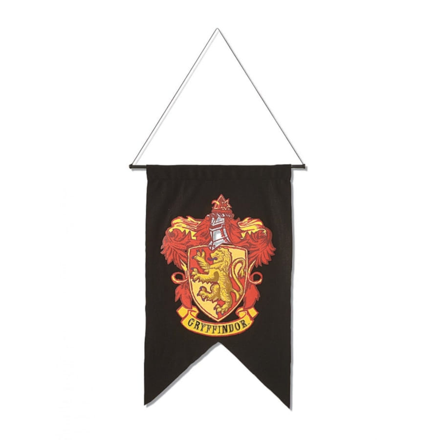 Représentant les couleurs mythiques de la maison Gryffondor, ce drapeau est noir et imprimé d'un blason jaune et rouge.