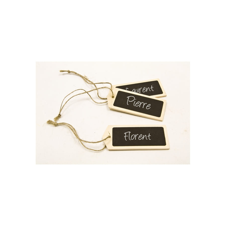 Les invités sont toujours ravis de voir leur nom figurer sur la table. Elaborez une décoration très sympathique avec ces étiquettes ardoise en bois. De couleur beige et noire, chaque étiquette est de forme rectangulaire et est équipée d'une cordelette pour la fixation. Vous pourrez les placer sur la table ou bien les attacher à des petits cadeaux pour faire des petits présents personnalisés à vos amis.