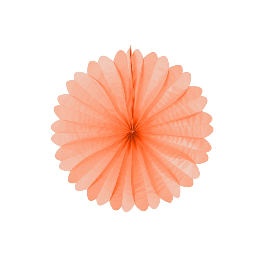 Eventail de décoration entièrement en papier. Cet accessoire de couleur abricot mesure 50 centimètres. Pour une décoration inspirée d'un thème basé sur la nature, cet éventail fera l'affaire.