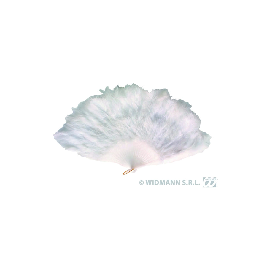 Éventail marabout blanc. Cet accessoire a une taille de 30 centimètres. Il est idéal pour une fête basée sur le thème Charleston des années 20-30 ou pour une soirée cabaret.
