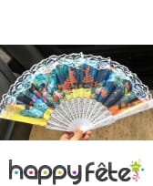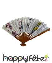 Il s'agit d'un éventail de forme arrondie et de couleur beige.