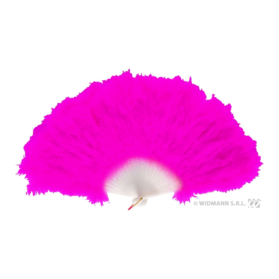 Éventail en marabout fuchsia pour femme. La taille de l'éventail est d'environ 30 centimètres. Il est idéal pour un déguisement de danseuse pour un carnaval.