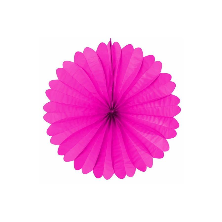 Eventail de décoration entièrement en papier. Cet accessoire de couleur fuchsia mesure 50 centimètres. Vous trouverez nombreux usages à ce simple accessoire, tels que décoration pour anniversaire, carnaval ou Saint Valentin!