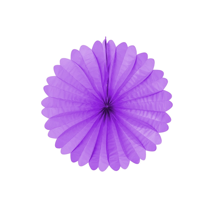 Eventail de décoration entièrement en papier. Cet accessoire de couleur lilas mesure 50 centimètres. Egayez l'atmosphère pour la Pâques, pour un mariage, pour un carnaval ou pour un anniversaire, grâce à ce magnifique éventail!