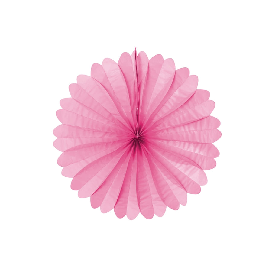 Eventail de décoration entièrement en papier. Cet accessoire de couleur rose mesure 50 centimètres. Si vous souhaitez organiser une fête basé sur le thème de la nature, cet éventail est exactement ce dont vous avez besoin.