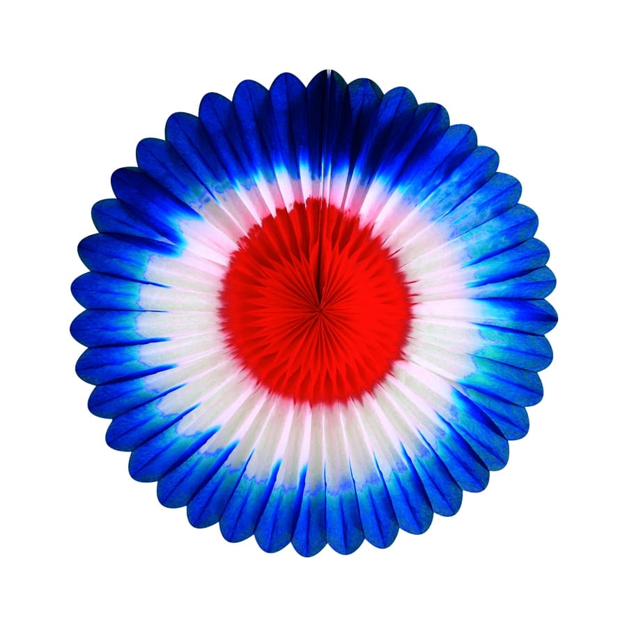 Célébrez la France avec cet éventail entièrement en papier ignifugé de couleur blanc, bleu et rouge fabriqué en France. Cet accessoire tricolore possède un diamètre de 50 centimètres. Vous pourrez l'utiliser pour une fête nationale ou pour un évènement sportif.