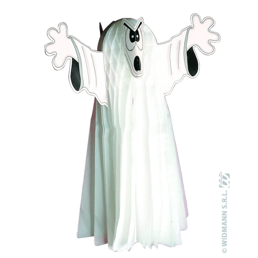 Papier blanc fluo alvéolé représentant un fantôme. Cet accessoire est à moitié terrifiant et à moitié comique. Il mesure 55 centimètres de long. C'est un accessoire qui ira très bien chez vous à l'occasion d'Halloween.