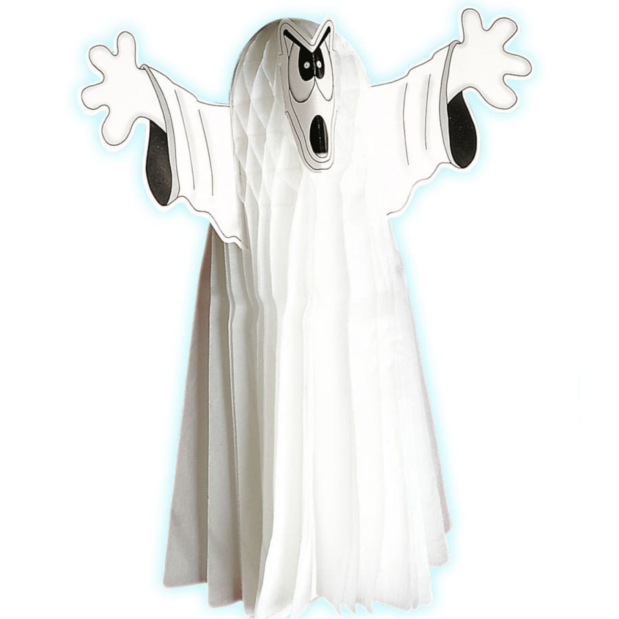 C'est la représentation en papier fin d'un fantôme blanc avec un visage et des bras en carton.