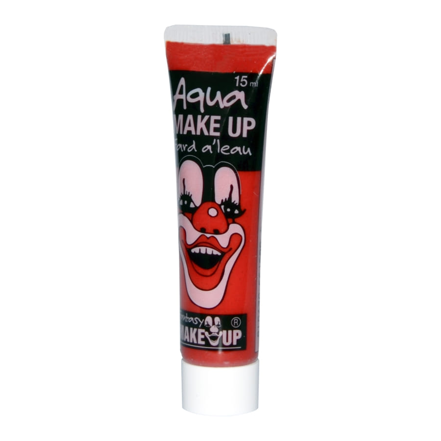 Tube de fard à l'eau de couleur rouge, de la marque Aquacolor. Ce tube contient 15 millilitres de maquillage, vous permettant de peindre environ 10 visages. Pour l'enlever, il suffit d'un peu d'eau et de savon. Cette couleur vive vous permettra de compléter un maquillage de clown pour un carnaval. Vous pouvez l'appliquer à même la peau en utilisant un pinceau pour un résultat plus précis ou superposer les couleurs.