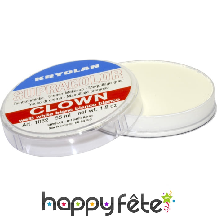 Ce fard qualité professionnelle est ce que vous avez besoin pour vous métamorphoser en clown. De couleur blanc, ce fard fait 55 ml. Il peut facilement s’étaler sur la peau, ce maquillage de bonne qualité vous servira pour être le parfait clown. Vous pourrez aussi vous en servir pour le carnaval. Pour vous démaquiller facilement penser à la crème démaquillage pour supra color.