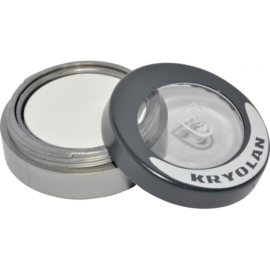 Pot de fard sec, mat et compact de couleur blanche, de la marque de qualité professionnelle Kryolan. Le pot contient 3 grammes de poudre pour paupières et visages.