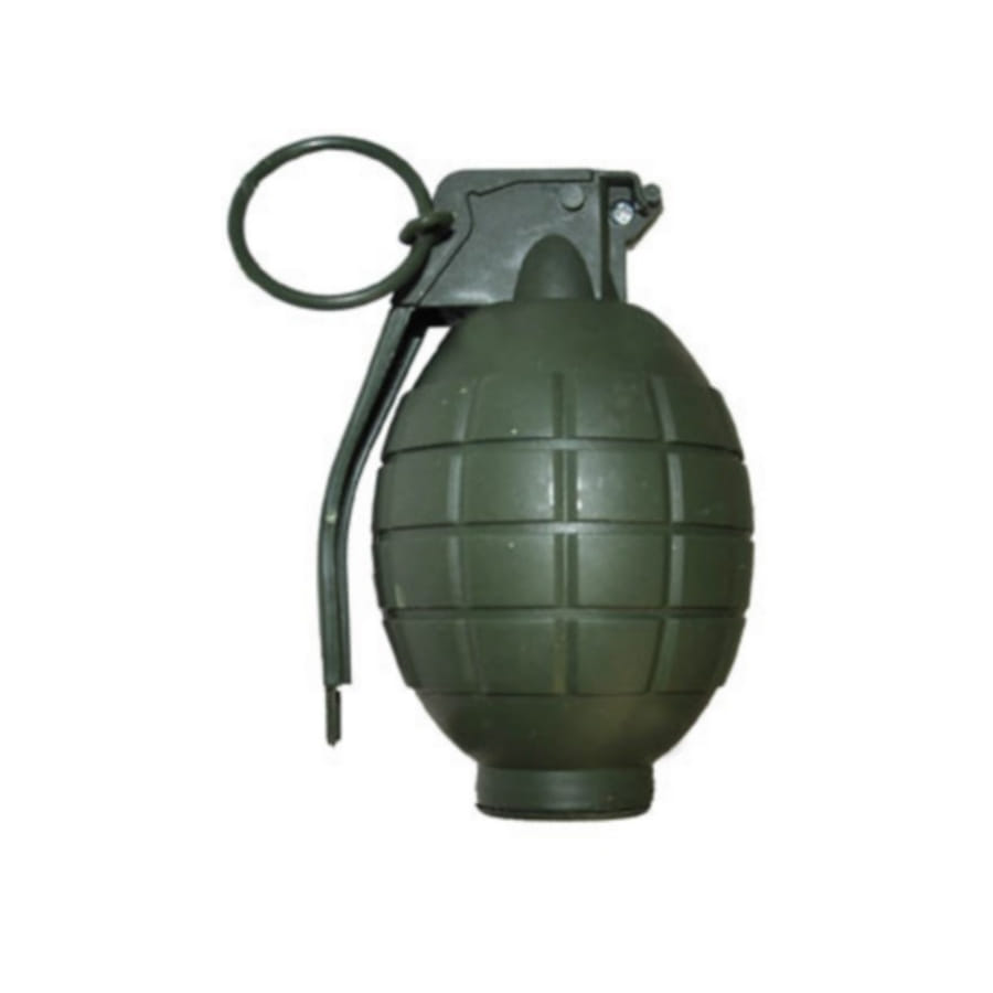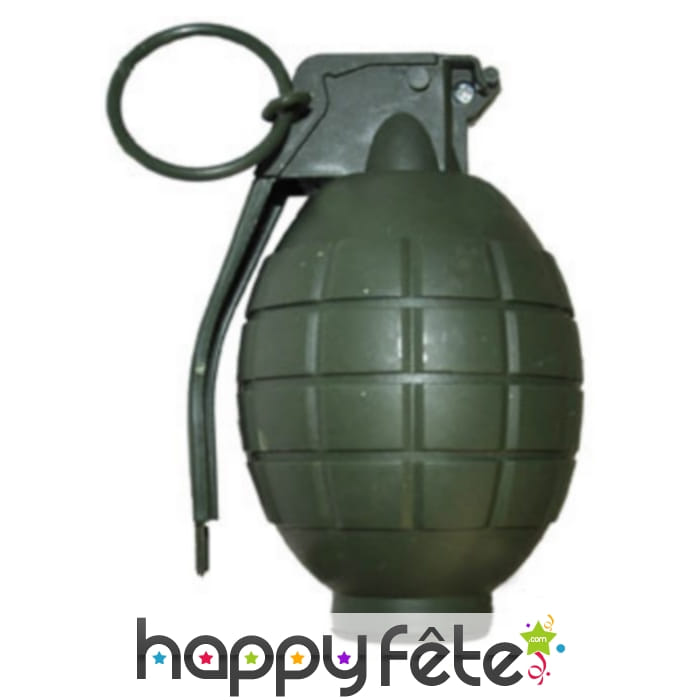 • Grenade en plastique mesurant 10 cm de haut (avec 2 piles incluses). Produit un son et de la lumière.
