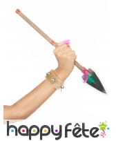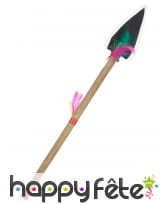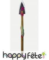 A divers endroits de cette fausse lance d'indien, sont disposées des plumes colorées.