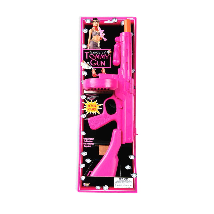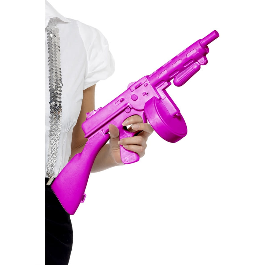 Happyfete vous propose ce magnifique accessoire de déguisement : une fausse mitraillette toute rose, aucun risque de passer inaperçu. Celle-ci émet du son et de la lumière pour plus d'effet. Elle mesure environ 49 cm. Pour un déguisement de gangster ou de guerrière, une soirée déguisée ou à thème, n'oubliez pas cette belle arme factice !