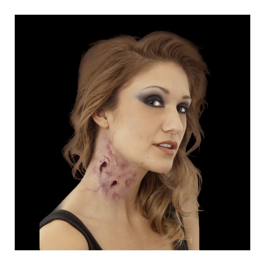 Ce produit cosmétique, dédié aux adultes, représente l'impact d'une morsure de vampire plus vraie que nature ! Il est de couleur rouge, livré sans maquillage ni faux sang. Avant la mise en place, il faut d'abord que vous choisissiez le bon endroit où vous voulez mettre les cicatrices, sur le cou bien sûr. Puis appliquez la colle sur la prothèse et/ou sur la peau et tamponnez à l'aide d'une éponge à maquillage ou tout simplement avec vos doigts. Enfin, appliquez du latex liquide sur les bords et mettez un peu de maquillage ou ajoutez du faux sang, à retrouver également sur Happyfete, pour produire un effet plus surprenant, qui ne manquera pas de créer une soirée Halloween riche en émotion !