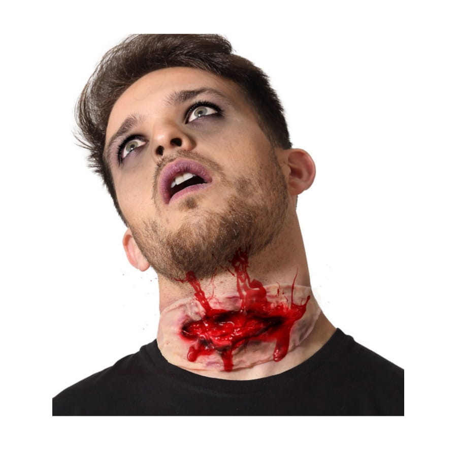 Jouez avec les illusions et donnez la chair de poule aux invités du prochain Halloween, avec la fausse plaie gorge tranchée.