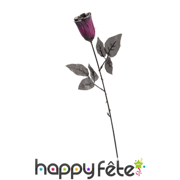 Cette fleur factice représente une rose aux pétales fermées, qui fait ressortir le noir et le violet.