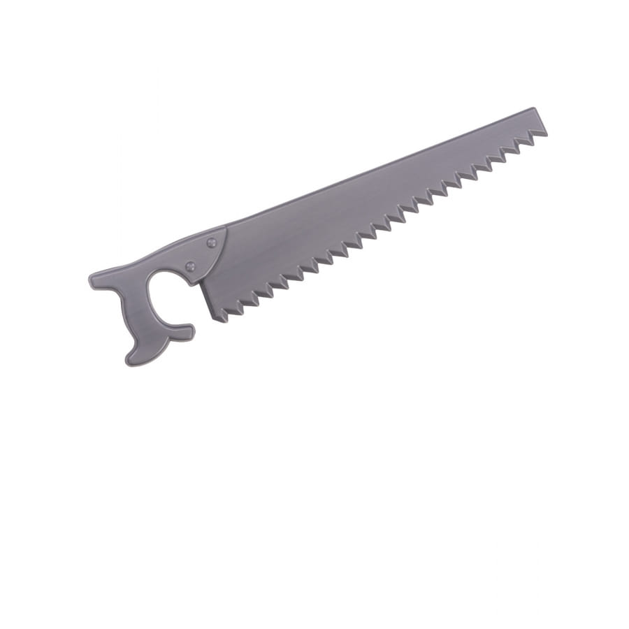 Cette jolie scie est fabriquée en matière plastique rigide et est de couleur argentée.