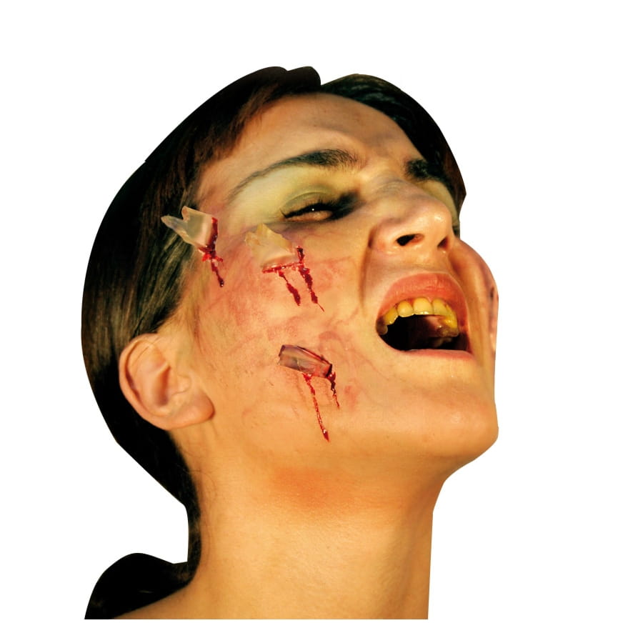 Vous devez réfléchir au maquillage après avoir choisi la tenue et les accessoires pour la fête d'Halloween. Tous ses détails sont importants pour intégrer votre personnage. En appliquant ce maquillage sur votre visage, par exemple, vous donnerez l'impression d'avoir été abattu par un malfaiteur. En effet, ces fausses blessures incrustées de verre représentent parfaitement des déchirements causés par des bouts de verre d'une bouteille. C'est pour cela qu'elles sont strictement interdites aux enfants.