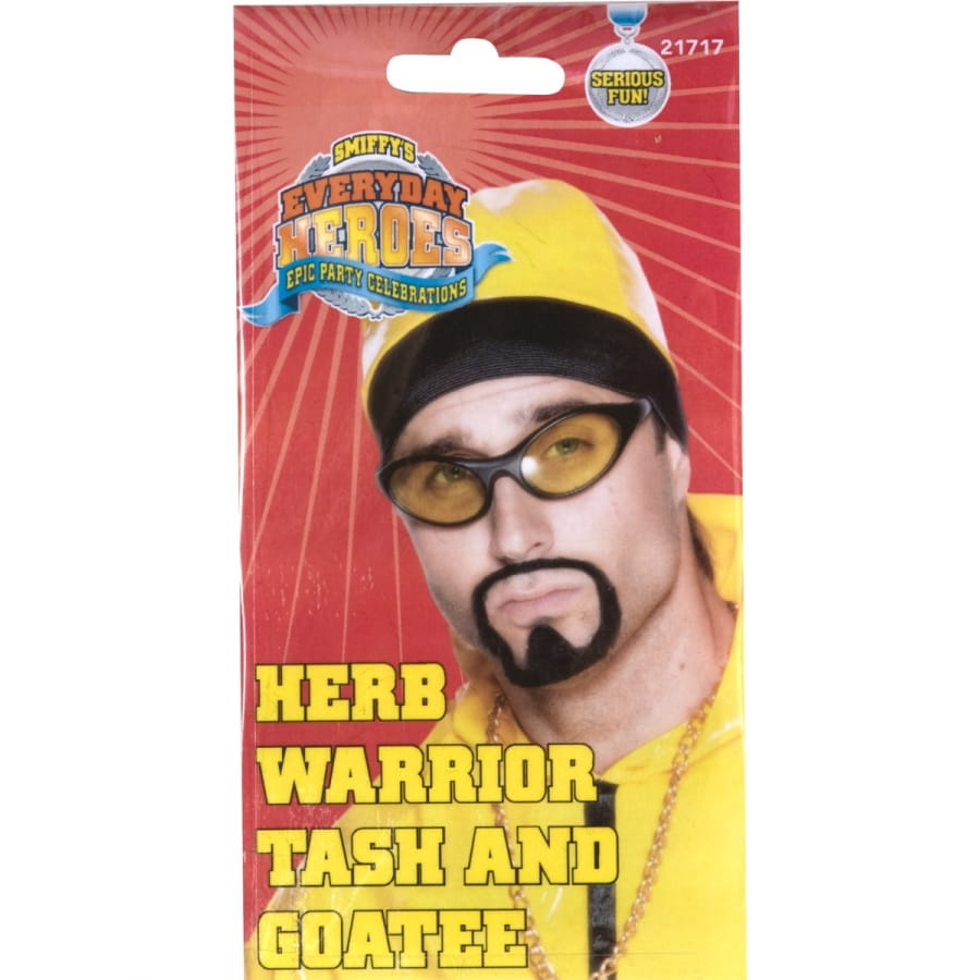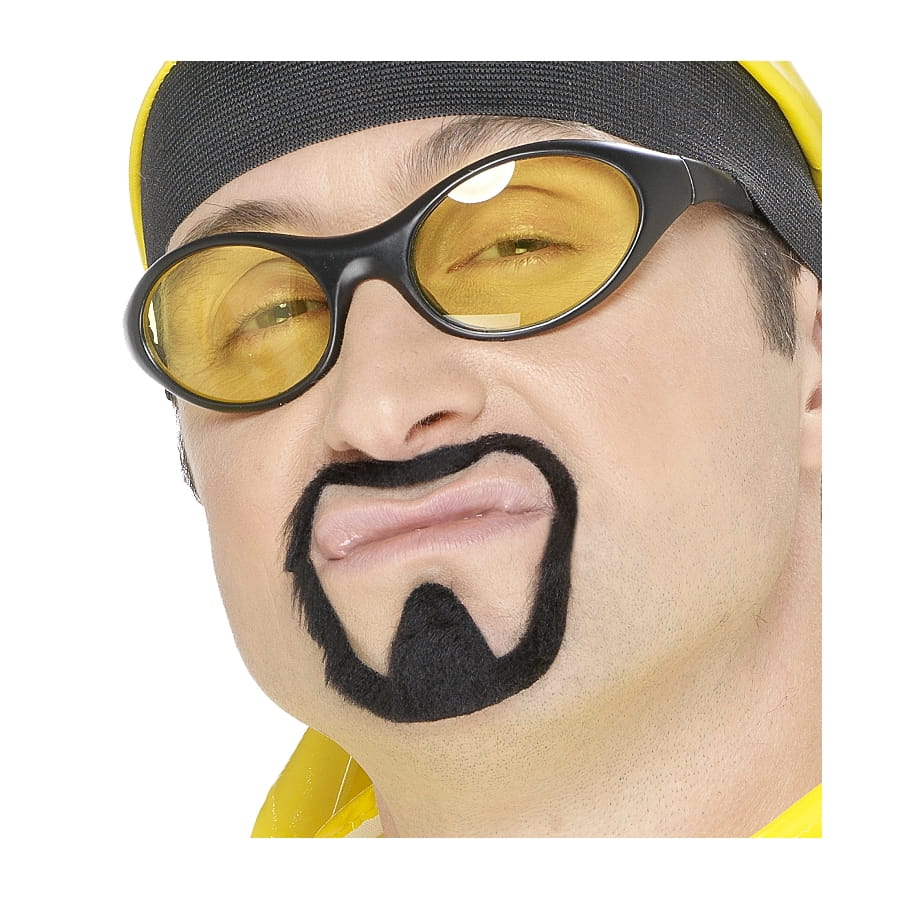 Fausse moustache et bouc de rappeur auto-adhésifs de couleur noir, pour homme ou adolescent. Cet accessoire vous permettra de vous transformer en rappeur ou en autre personnage Bling Bling.