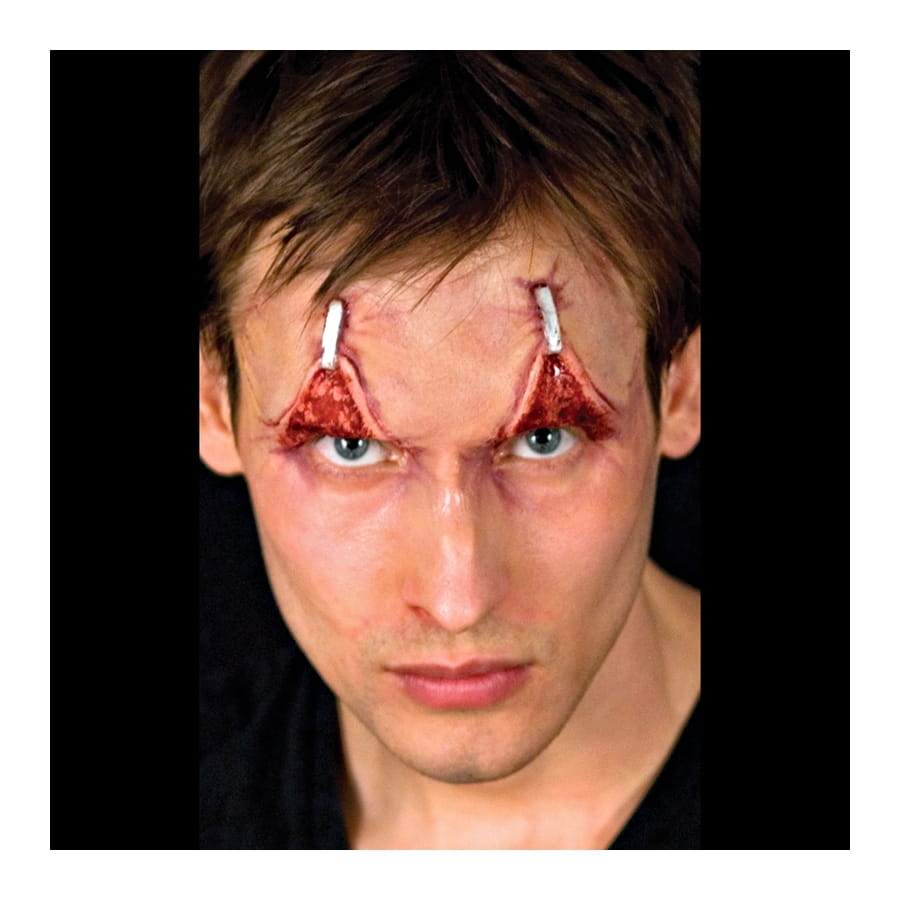 Rien de tel que ces fausses paupières qui donnent l'illusion d'être retournées et agrafées sur le front, pour apporter une touche effrayante et époustouflante à votre visage. Elles sont de couleur rouge, vendues seules, sans maquillage. Avant l'application, choisissez d'abord l'emplacement puis appliquez la colle sur la peau et/ou sur la prothèse et tamponnez à l'aide de vos doigts ou d'une éponge à maquillage. Mettez du latex liquide sur les bords pour donner plus de réalisme. Vous pourrez aussi trouver tous les maquillages et effets spéciaux sur notre site, pour agrémenter ces paupières. Tenez-vous ainsi prêt à entendre les cris et les hurlements de peur de vos amis lors de la terrifiante nuit d'Halloween.