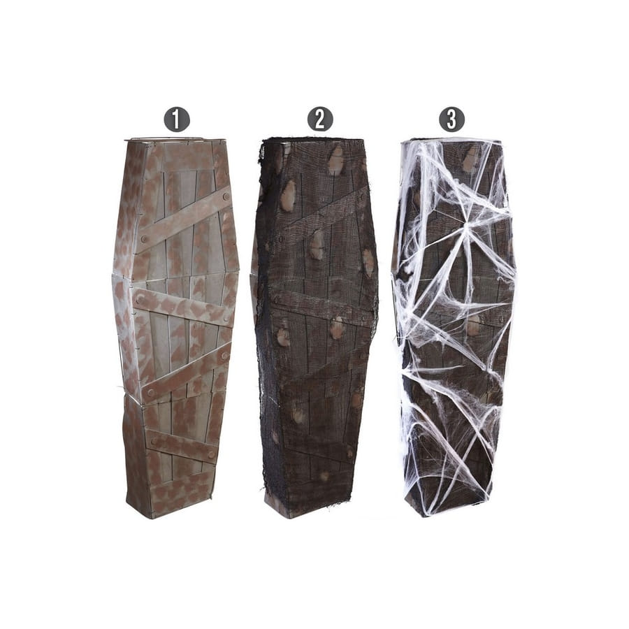 N'allez plus chercher ailleurs, car voici un faux cercueil décoré de toile, 160cm de haut.
