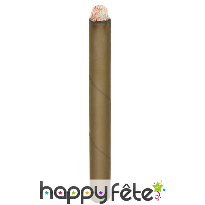 De couleur marron, ce faux cigare géant de 24 cm de long pour 2,5 cm de diamètre,est coiffé à l'extrémité par de fausses cendres.