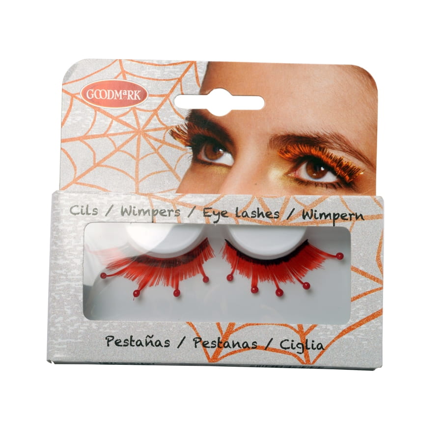 Implantez du sang jusque dans votre regard. Les faux cils gouttes de sang ont été spécialement élaborés pour Halloween. Que diriez-vous Mesdames d'acquérir une paire de faux cils extraordinaires ? Le modèle proposé est de couleur rouge, avec des petites gouttes de sang accrochées aux extrémités des cils. C'est le genre d'accessoire cosmétique à porter avec un déguisement de créature mystique.