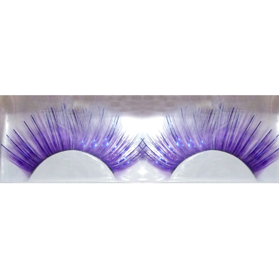 Pour une soirée de folie ou vous vous déguiserez en drag queen , ces faux cils autocollants seront le parfait accessoire. Vous pouvez aussi les porter pour une fête ayant pour thème funky et punk. Cette paire de faux cils jumbo de couleur violet lamé bleu commencez les par les coller au centre puis à gauche ensuite à droite.