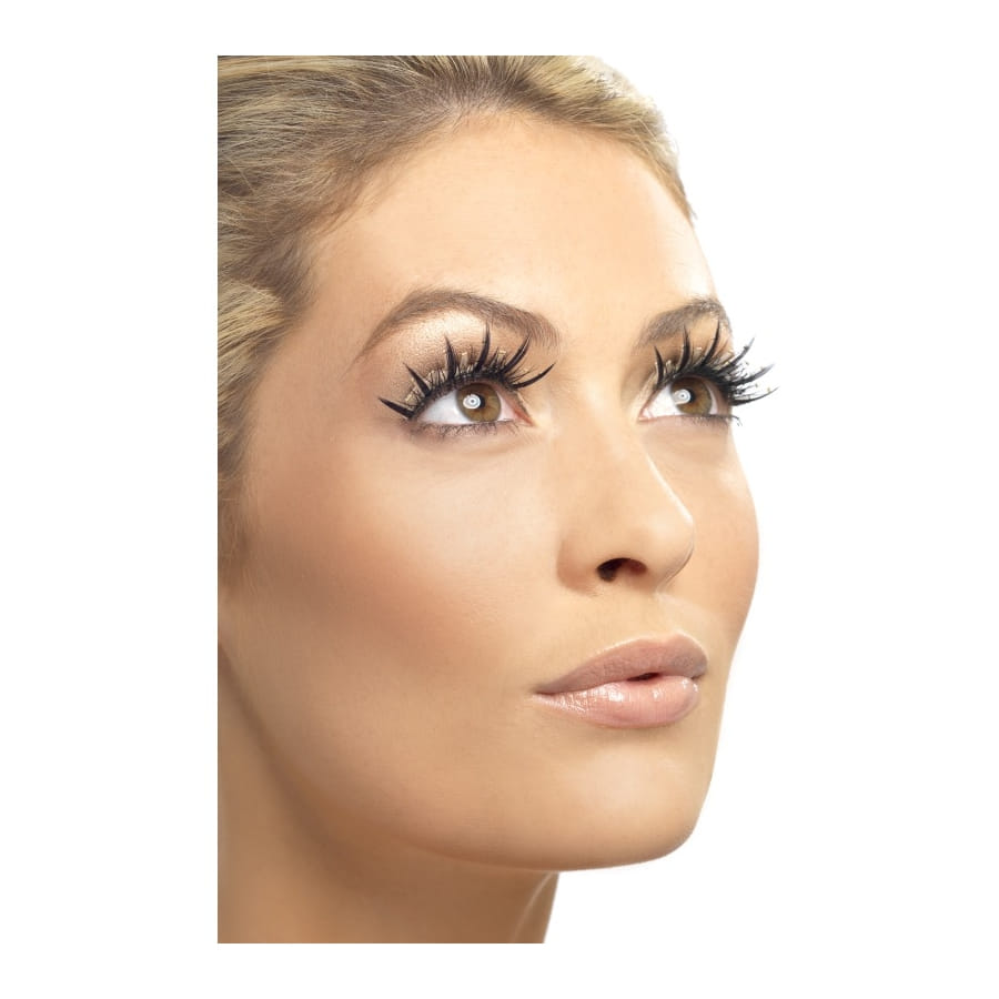 Paire de sublimes faux cils "araignée" pour femme. Chacun des faux cils est extrêmement long, alternant entre le jaune et le noir. Ils donneront une impression filamenteuse, idéale pour agrémenter un déguisement d'Halloween.