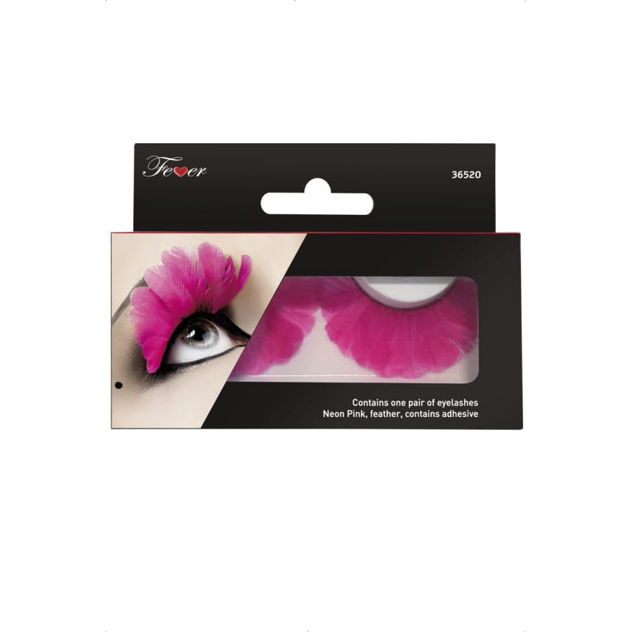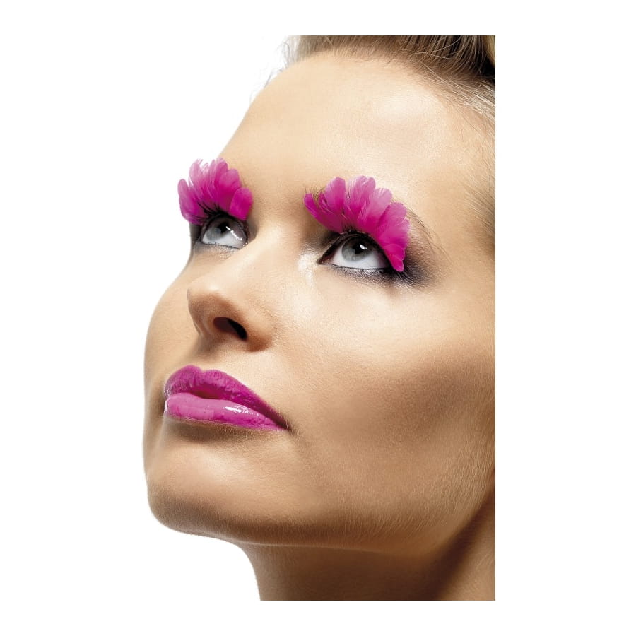 Paire de faux cils de couleur rose, entièrement composé de plumes, pour femme ou adolescente. Les cils sont longs et feront ressortir votre regard. Ce type d'accessoire est idéal pour un carnaval, pour une soirée funky ou pour compléter un déguisement de danseuse de cabaret.
