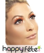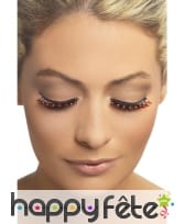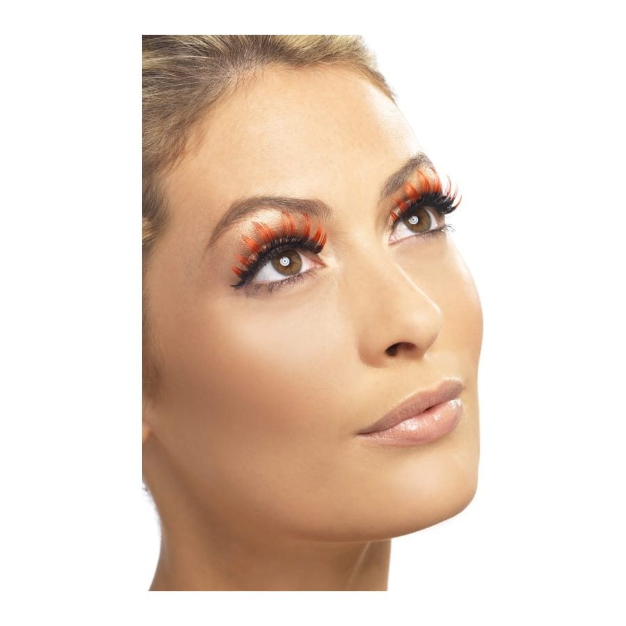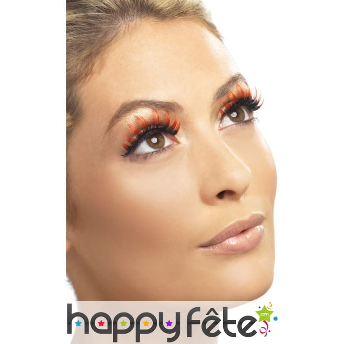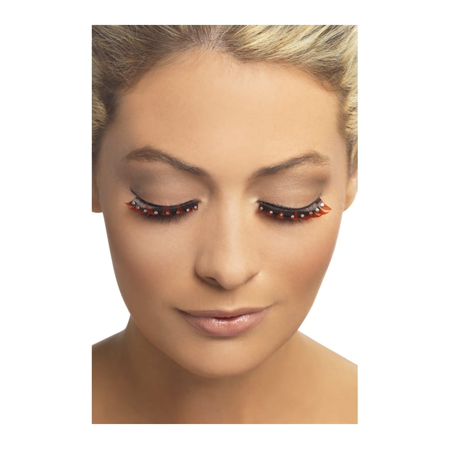 Paire de faux cils de couleur rouge et noire, pour femme ou adolescente. Les faux cils sont noirs à la base et deviennent graduellement rouges vers les extrémités. Vous trouverez cet accessoire efficace pour plusieurs occasions tels qu'Halloween, carnavals ou soirées en boîtes de nuit.